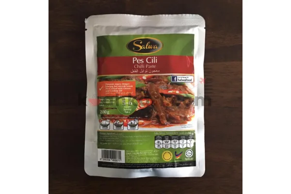 Lepas itu kau masukkan pes cili Salwa. Pes Cili Salwa ini sudah siap retort, maksudnya dah siap masak lengkap dah semua rasa. Siap kau nak buat sambal tumis pun boleh. Rencah nasi goreng, mee goreng semua boleh. Senang ya ampun.