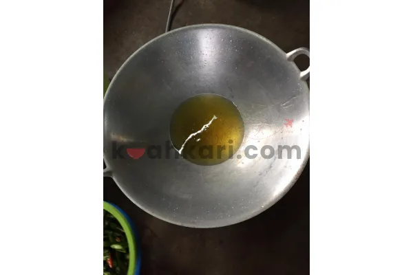 Masukkan minyak. Untuk tumis je. Kau agak-agaklah. Kalau itu pun nak ditanya, abang sekeh kau dik. Hidupkan api dan semangat.