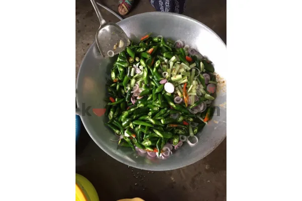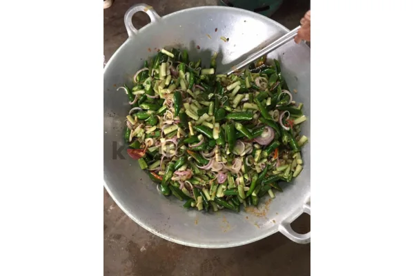 Lepas itu kau masukkan semua timun dan cili hijau. Kacau rata. Masa ini, air timun akan keluar dan akan berkuah sedikit. Jadi kau tak payah nak cuba-cuba tambah air.