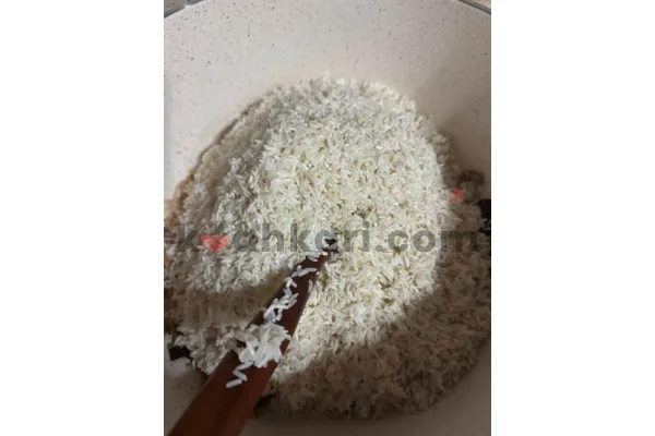 Masukkan beras yang dibasuh bersih dan direndam setengah jam awal kemudian ditoskan.